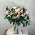 Букет из 5 пионов и эвкалипта