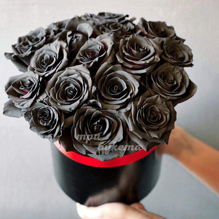 17 черных роз в шляпной коробке