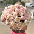 Букет из 7 персиковых роз с лагурусом