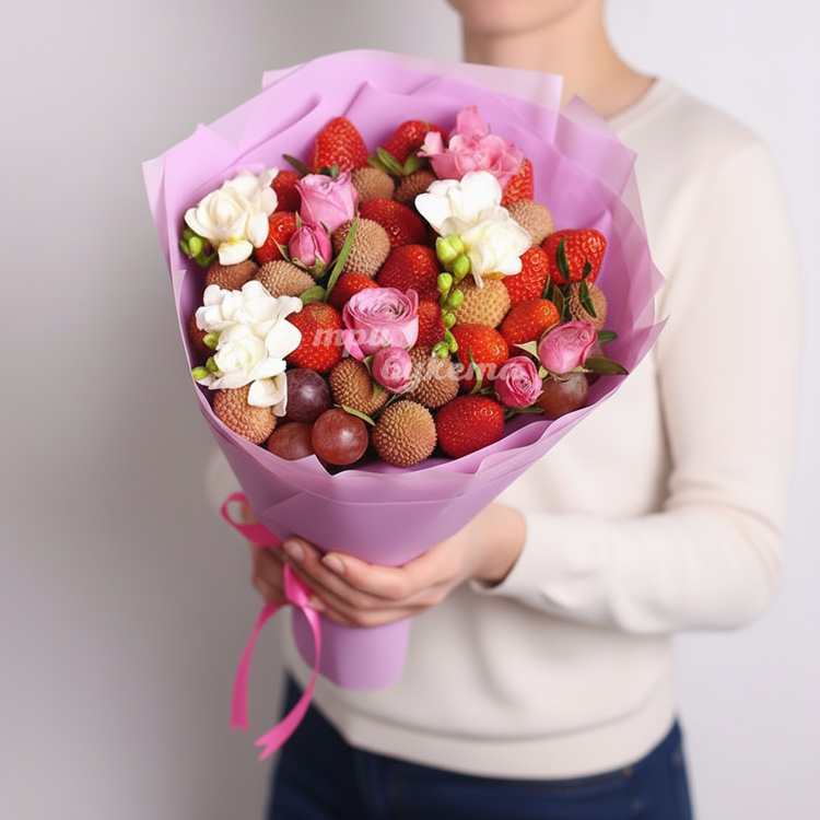 Букет из клубники и фрезии