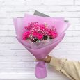 Фиолетовый букет эустом, гвоздик и роз