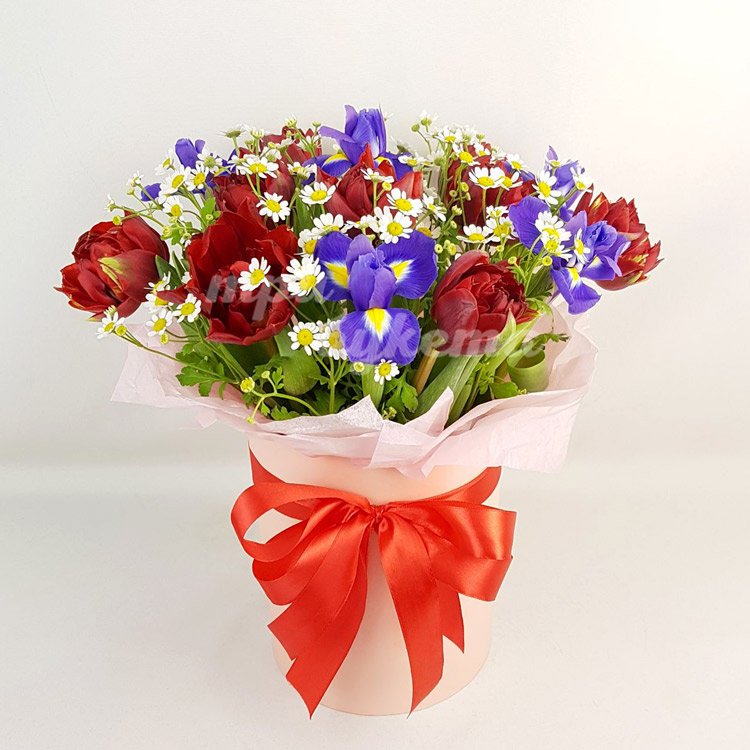 Ирисы и тюльпаны с ромашкой