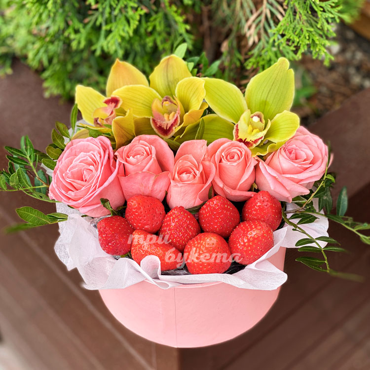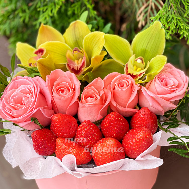 Композиция из клубники и орхидей