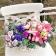 Композиция ярких цветов в шляпной коробке