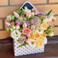 Коробка из эустом, сирени и макарунами