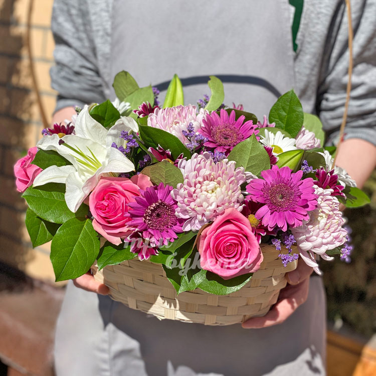 Корзина с лилией и хризантемой