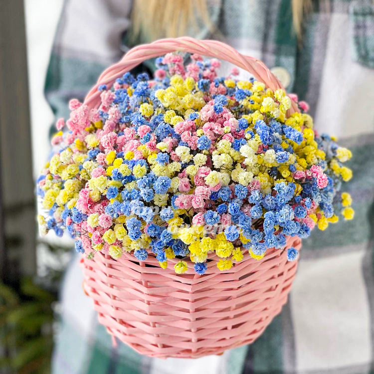 Корзинка голубой и желтой гипсофилы