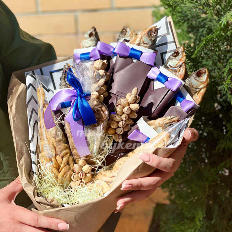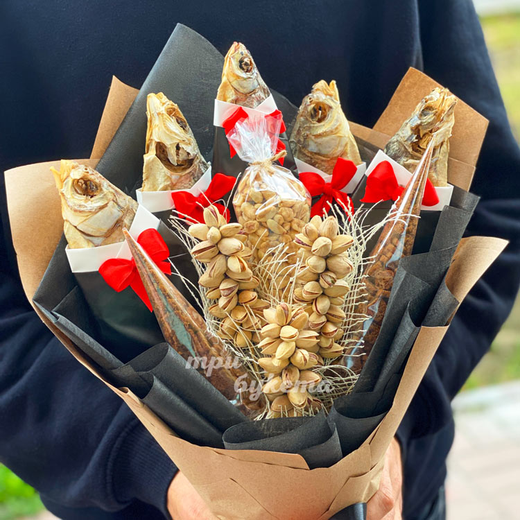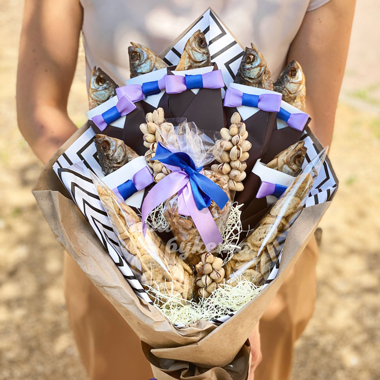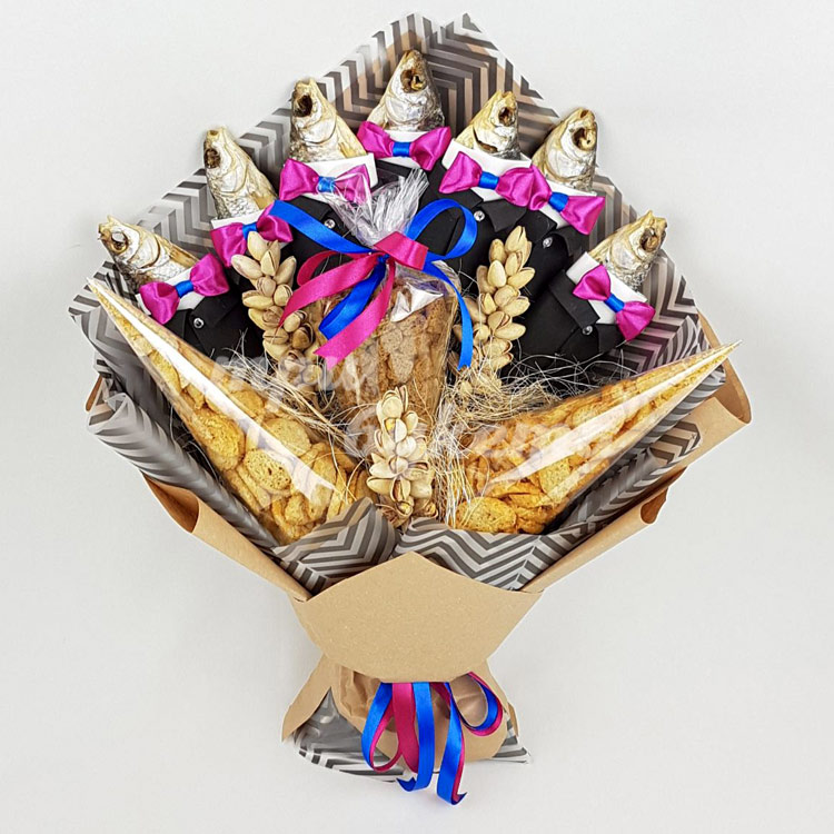 Мужской букет из рыбы и сухариков