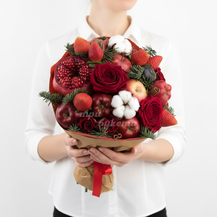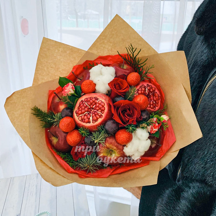 Новогодний букет из гранатов и роз