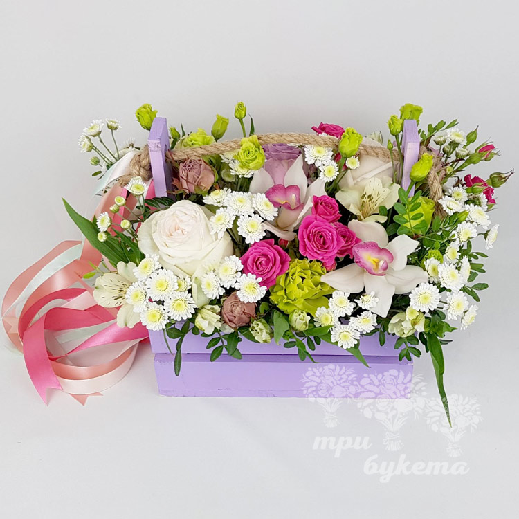 Орхидеи и розы в ящичке