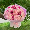 Розовый букет роз, антирринумов и зелени