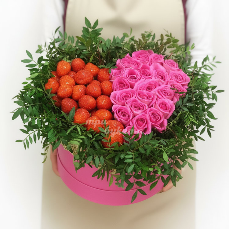 Сердце с розами и клубникой
