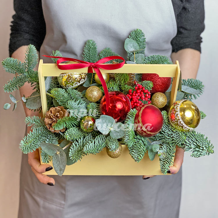 Ящичек на Новый год из еловых веток