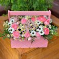 Ящик фиолетовых хризантем и лимониума